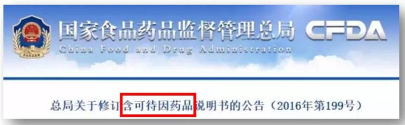 2017年01月04日,国家食品药品监督管理局(CFDA)发布“关于修订含可待因药品说明书的公告”,要求所有生产含可待因药品的企业修订说明书。[详细]